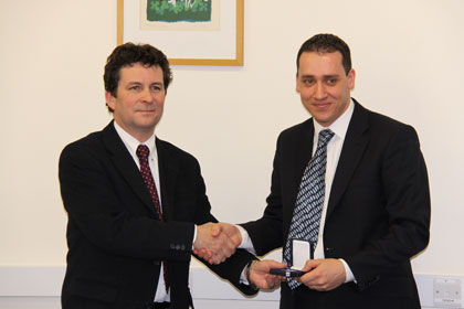 Dr Tom Owens, Chairman presents the Dr. Dick Nolan memorial award for best BST trainee went to Dr. Jacques Diacono